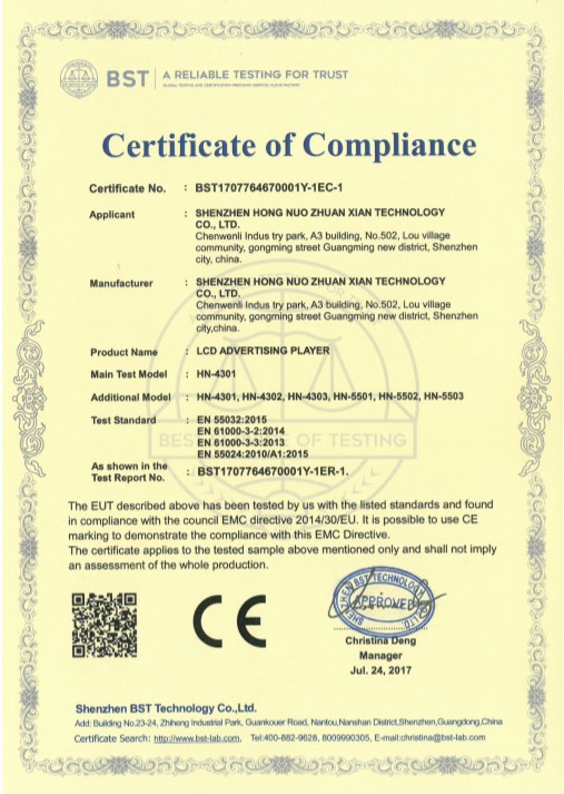 鸿诺专显从系统架构和工业设计伊始,严格按照国际通性标准进行开发与生产,系统软硬件均符合相关国际国内标准,从软件定制、产品生产、方案实施到后期运维服务,通过公司全体人员长期不懈的努力,“鸿诺服务”越来越为人所熟知,为赢得客户的信任和用户的满意打下了坚实的基础。